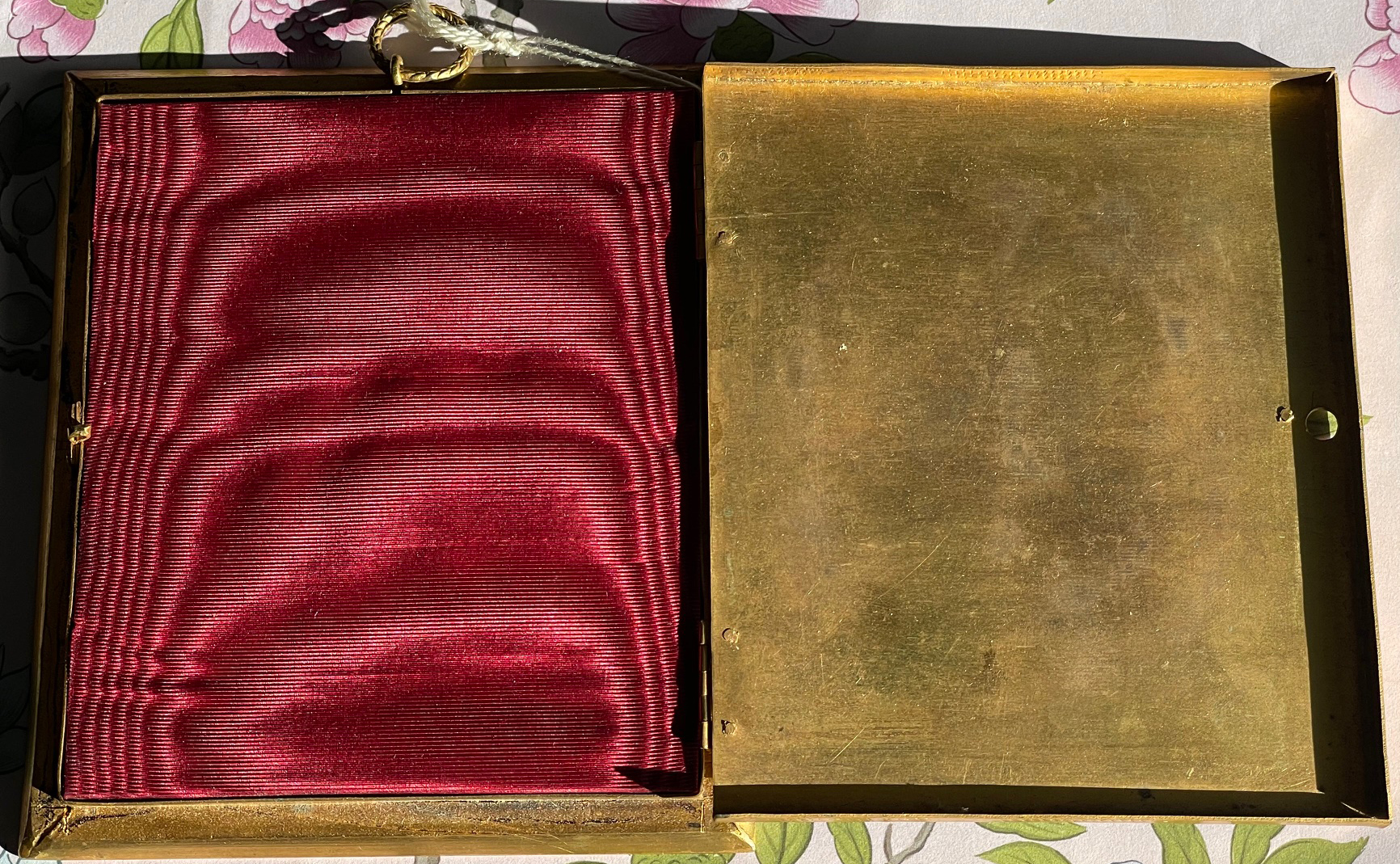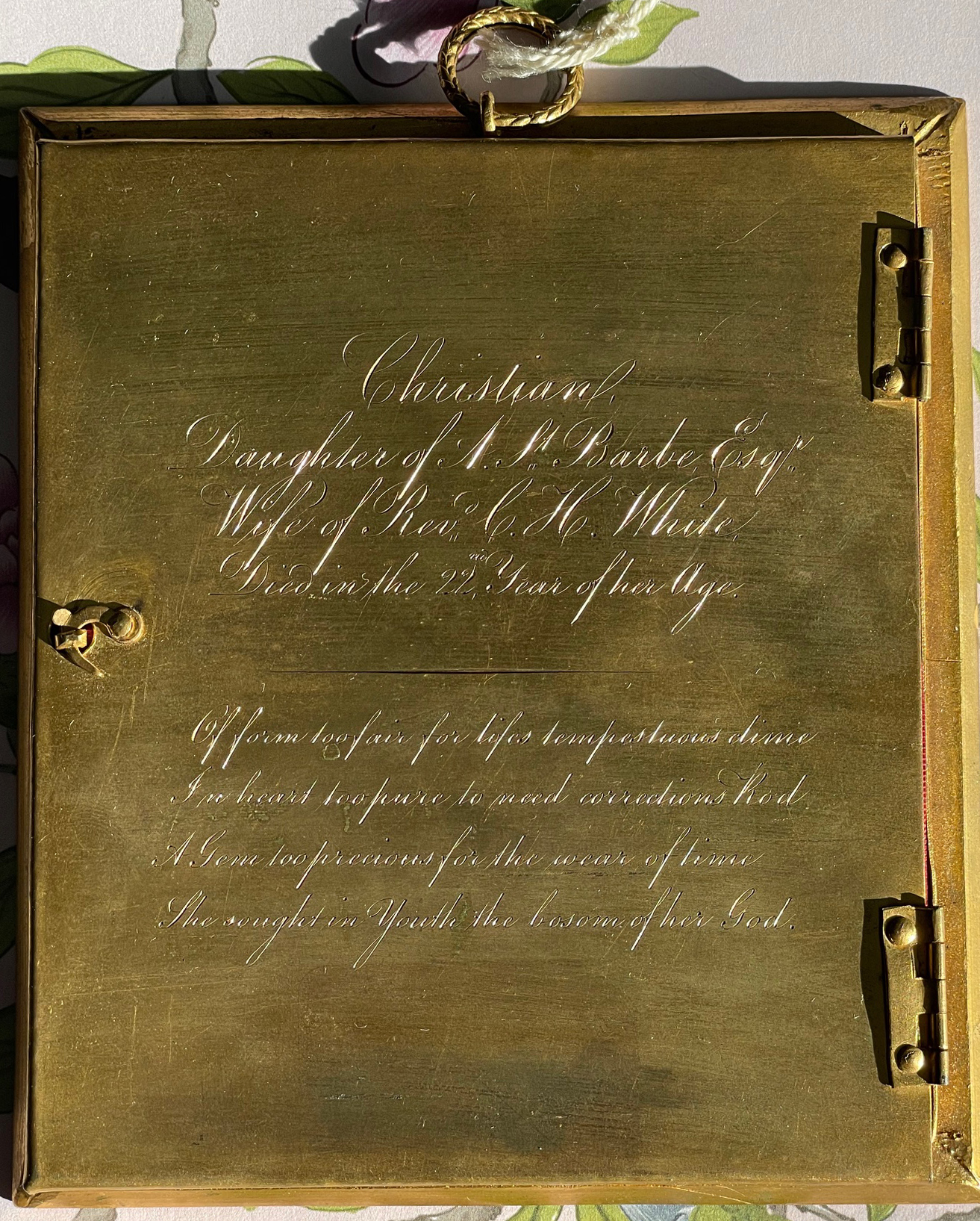 Painted by the well-listed artist Anne Mee, the portrait is set in a decorative gilt metal frame that is hinged and extensively engraved reverse with the sitter’s details and a moving tribute (see above).