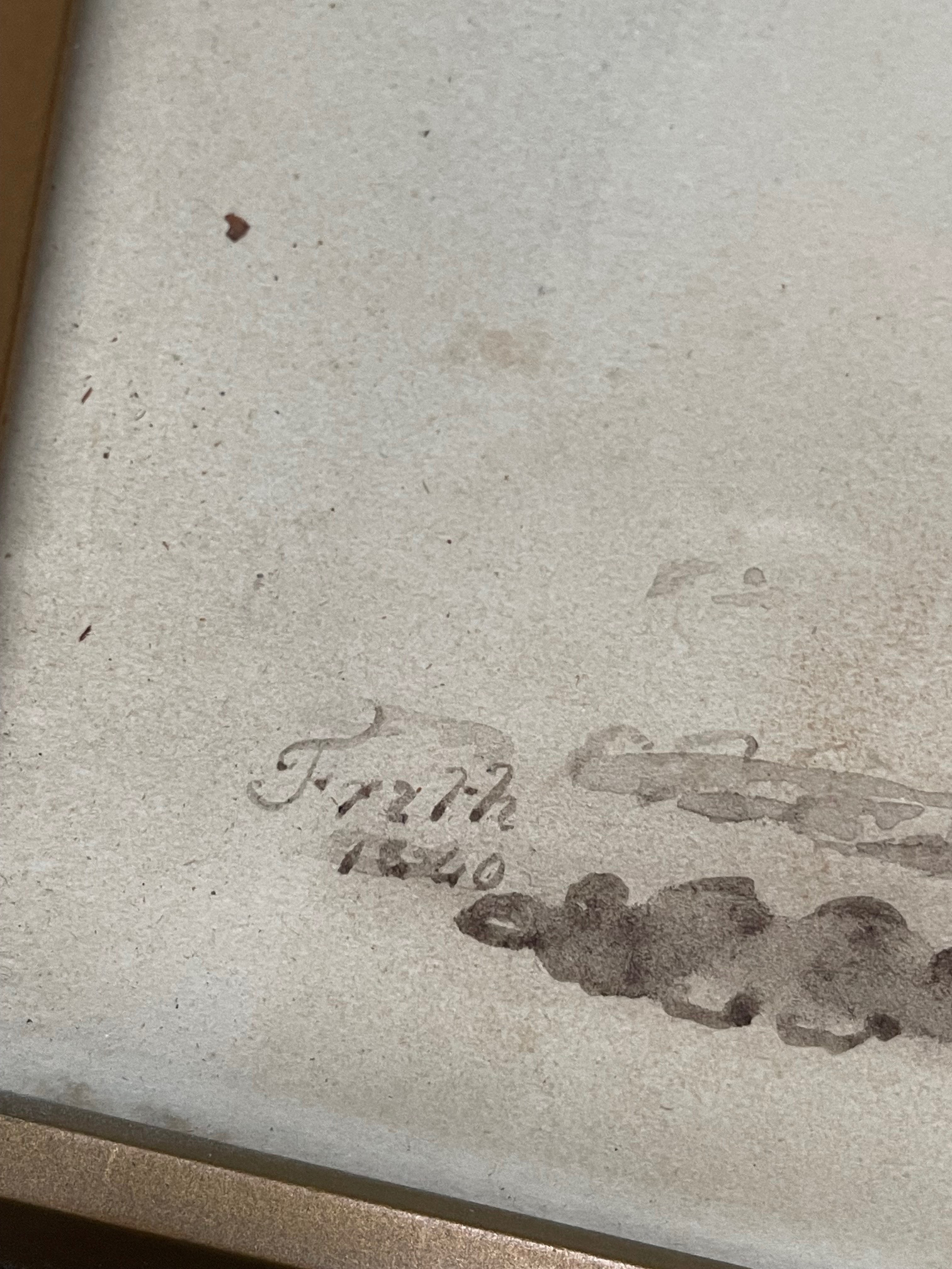 Set against a sepia watercolour wash, the silhouette is signed Frith / 1840 bottom left for Frederick Frith of the Royal Victoria Gallery. It is housed in the original rosewood frame with a gilt slip. The silhouette is in fine clean condition; the frame has an old corner chip top right but is otherwise also fine.
