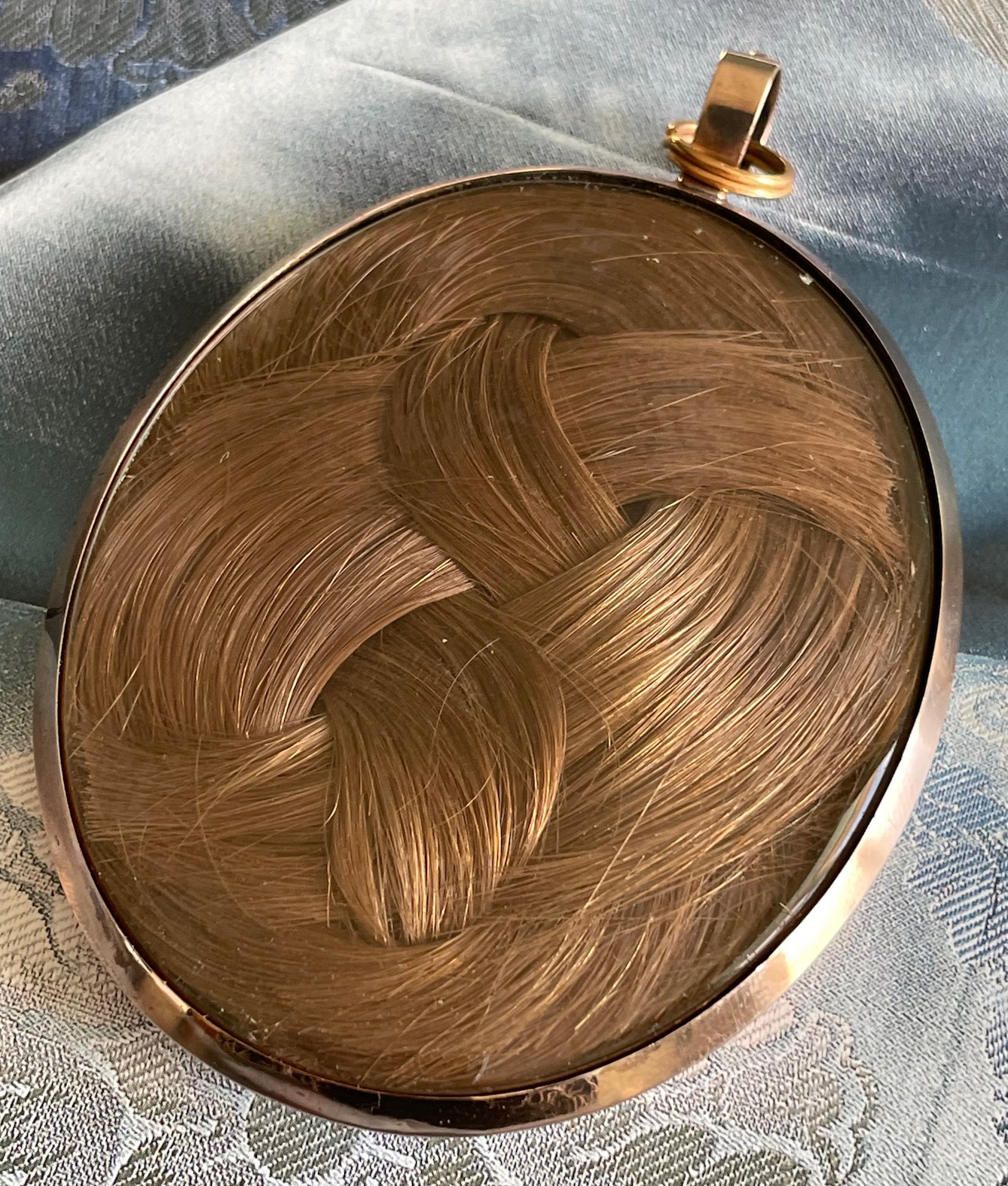 The portrait is presented in its original gold plated frame, the reverse glazed to show plaited brown hair.