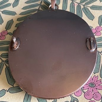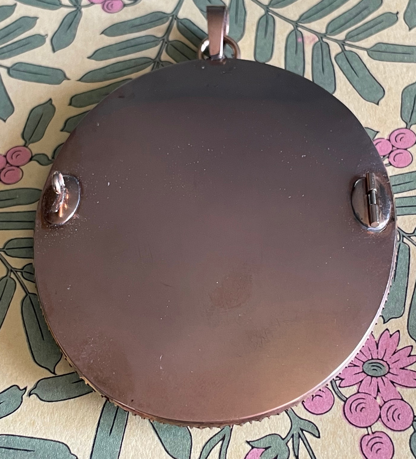 The portrait is not a regular oval so there are straight edges visible on each side. It is otherwise fine and is housed in a 9ct gold frame with a seed pearl border and bail. Enclosed on the reverse, the brooch fitting lacks the original pin.