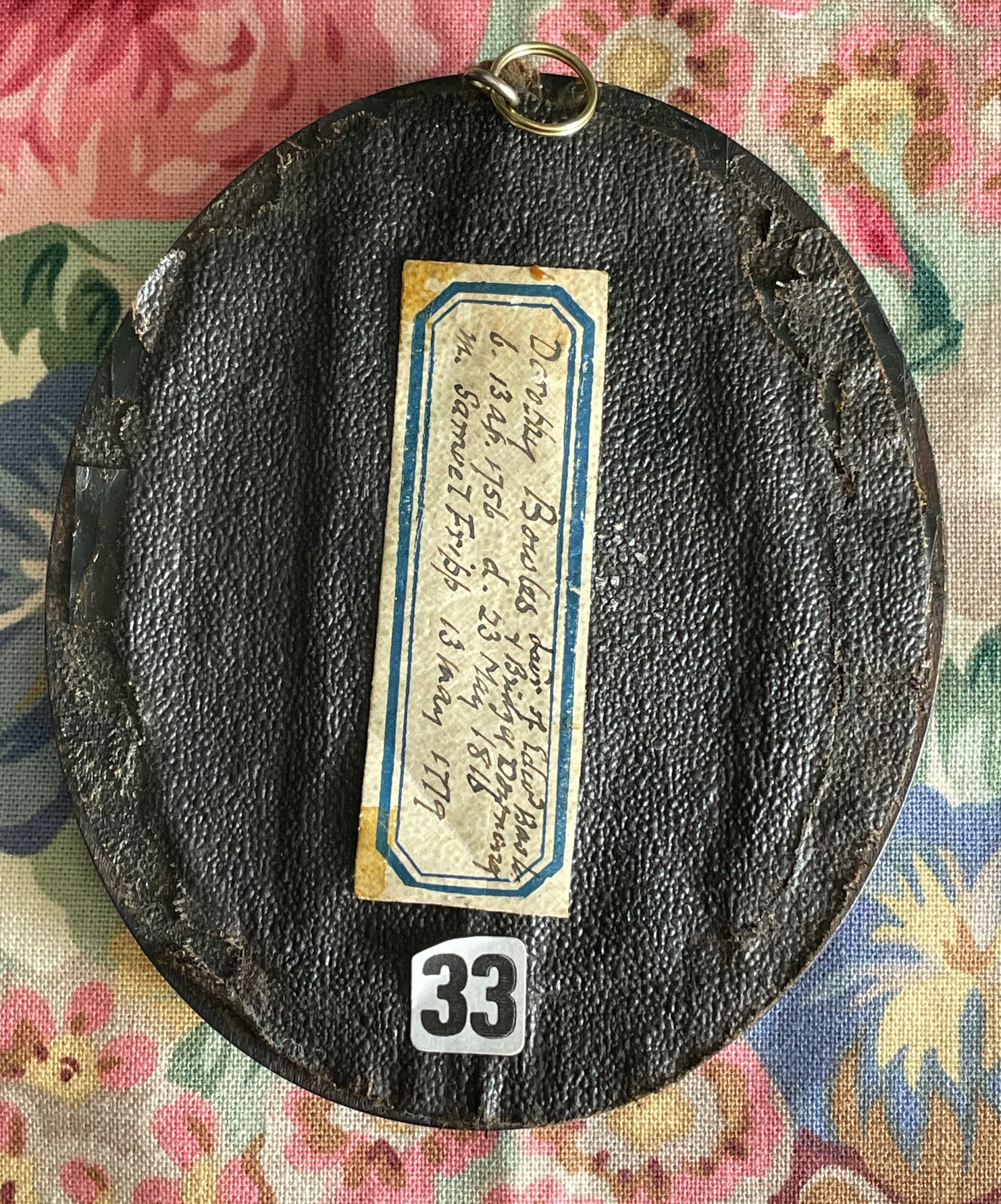 The portrait resides in an ebonised frame with convex glass with a hand-written label reverse.